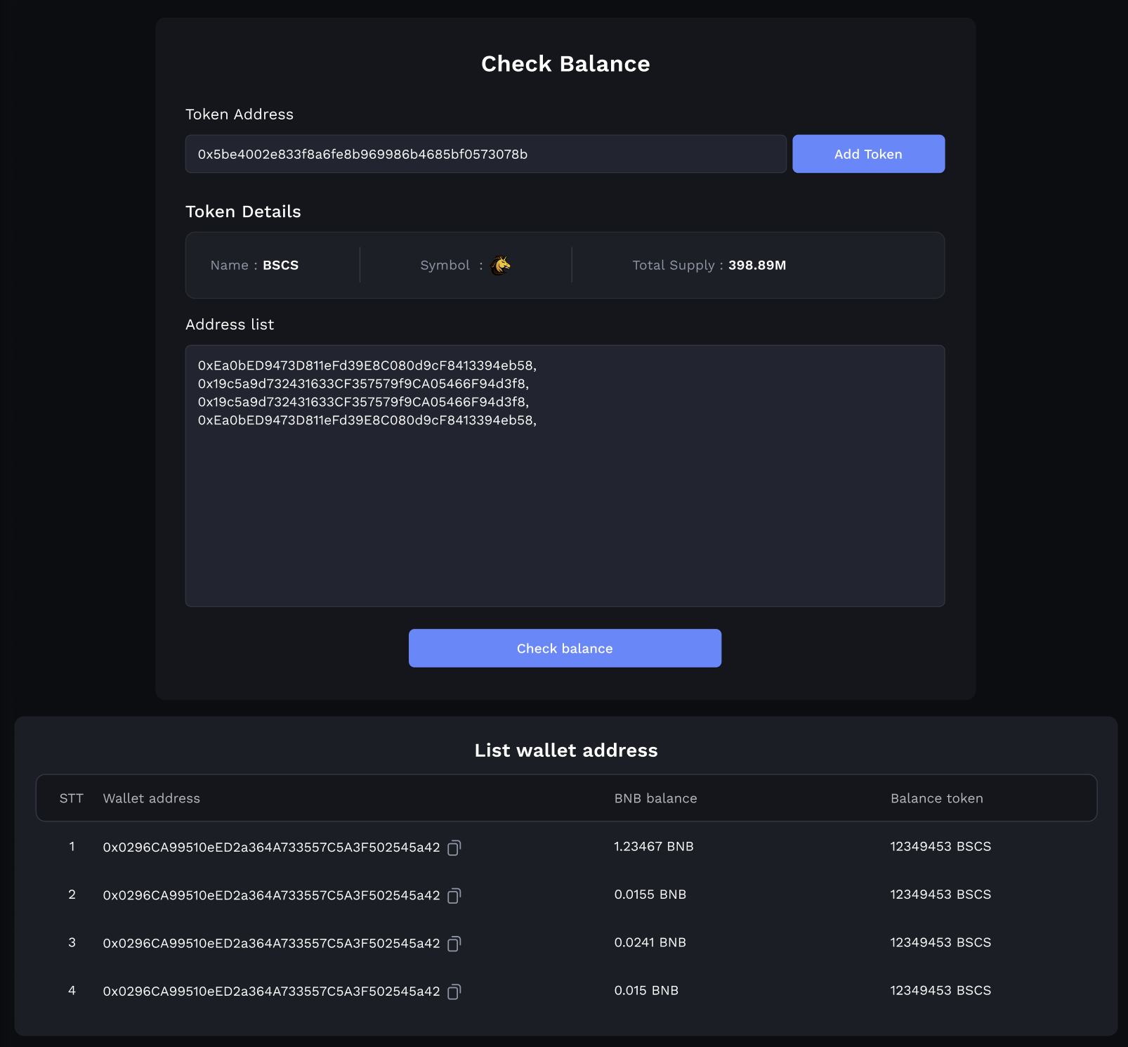 * **Efficiency:** Save time and effort by conveniently monitoring your token balances across multiple wallets from a single platform.